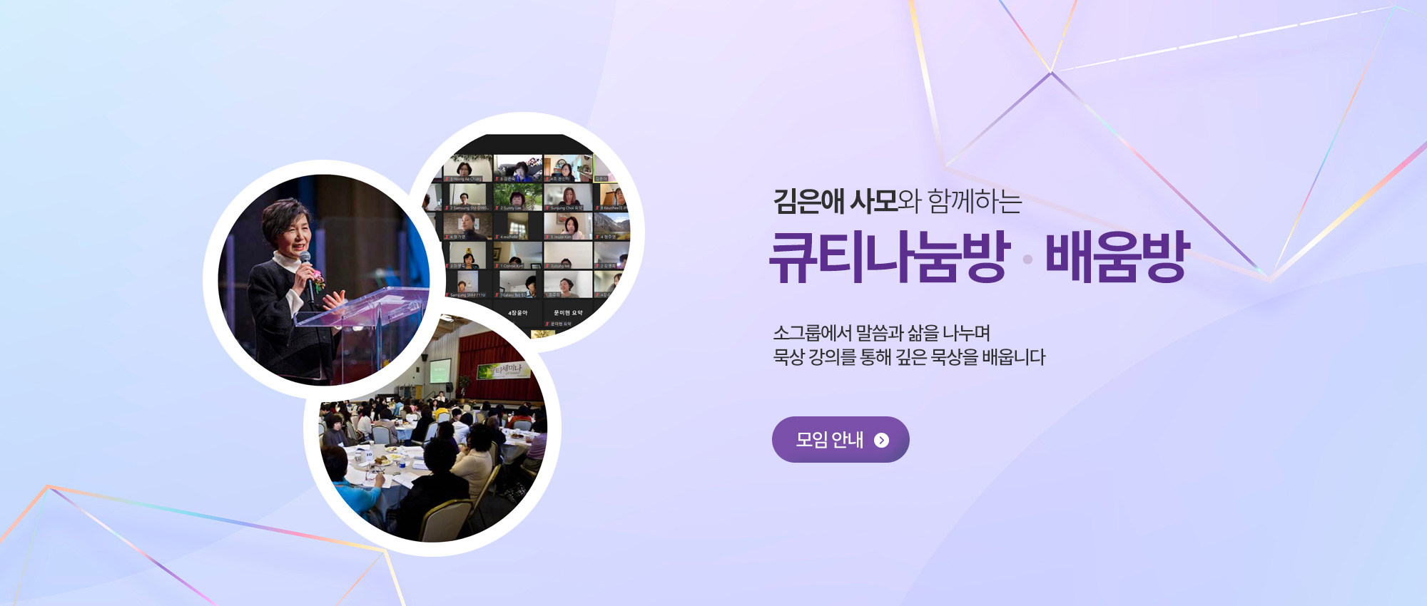큐티라이프 모임과 뱅큇, 세미나와 관련한 사진입니다